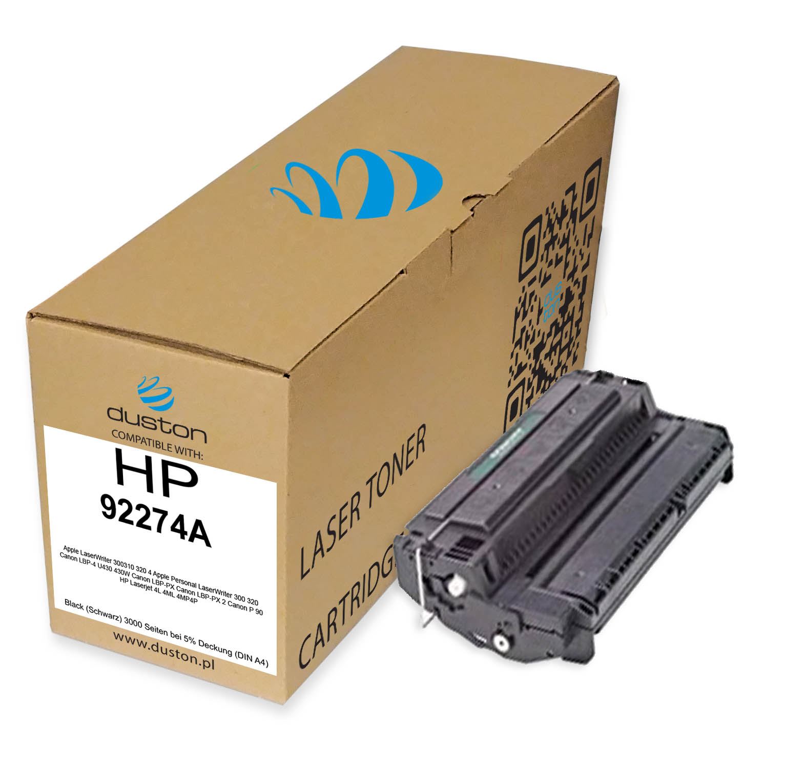 92274A, 74A Schwarz Duston Toner kompatibel mit Apple LaserWriter 300310 320 4 Apple Personal LaserWriter 300 320 Canon LBP-4 U430 430W Canon LBP-PX Canon LBP-PX 2 Canon P 90 HP Laserjet 4L 4ML 4MP4P